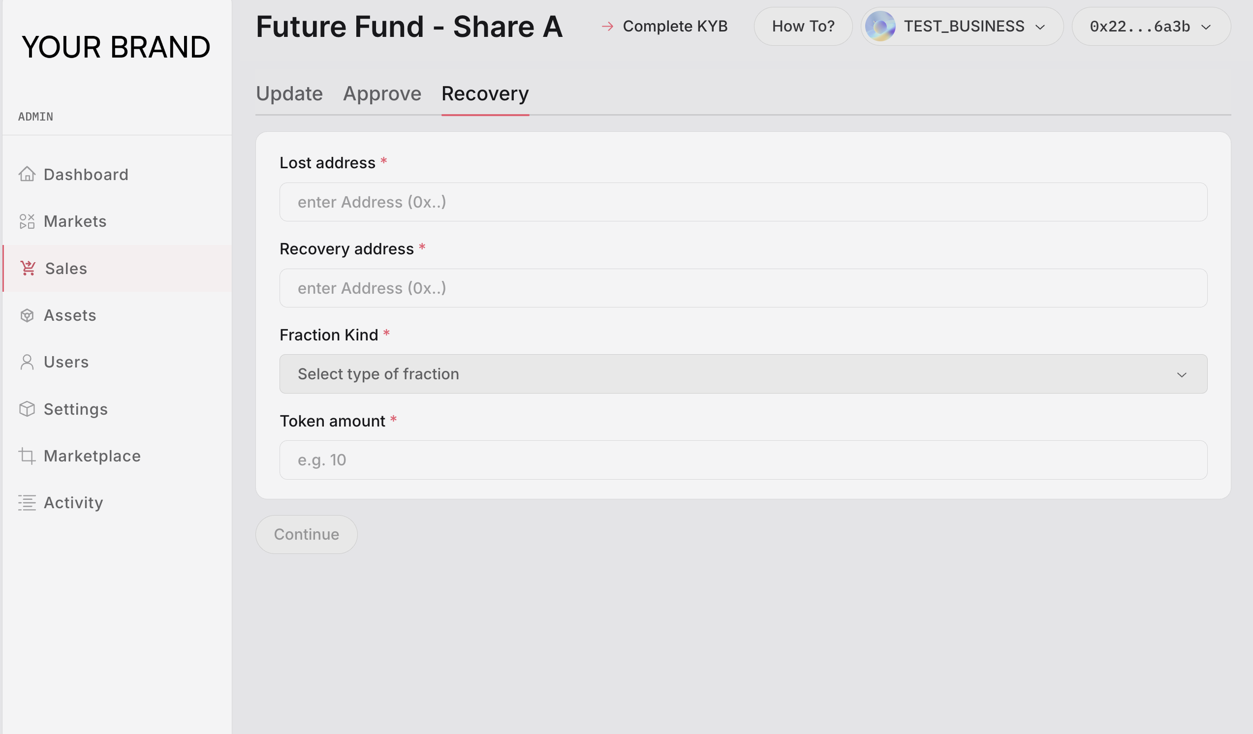 The fraction recovery allows you to transfer fraction tokens from one address to another. This is useful in case fraction token holders lose access to their wallets.